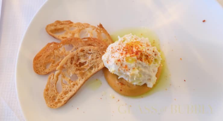 Devon Crab mayonnaise – paired with L’Espirit Nature Extra Brut Blanc de Blancs Organic: “The Champagne certainly brings out the creamy sensation of the dish and lengthens the crab flavours in the palate.”