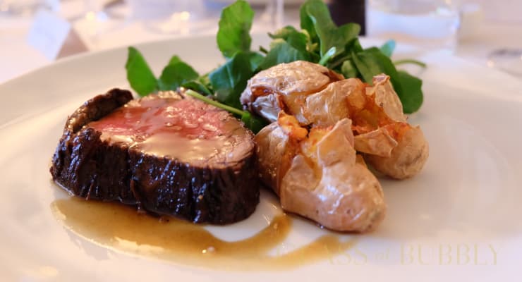 Fillet of beef, crispy potatoes, watercress and Béarnaise sauce – paired with Rosé de Saignée: “The tannins are quite strong and for this dish I was not too sure about the pairing qualities, still very much the red berry fruits here mixing with the tender and well flavoured meat…”